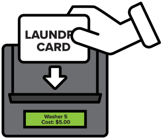 La tarjeta de lavandería se utiliza para poner en marcha lavadoras y secadoras. La tarjeta es reutilizable y recargable. No se necesitan monedas.